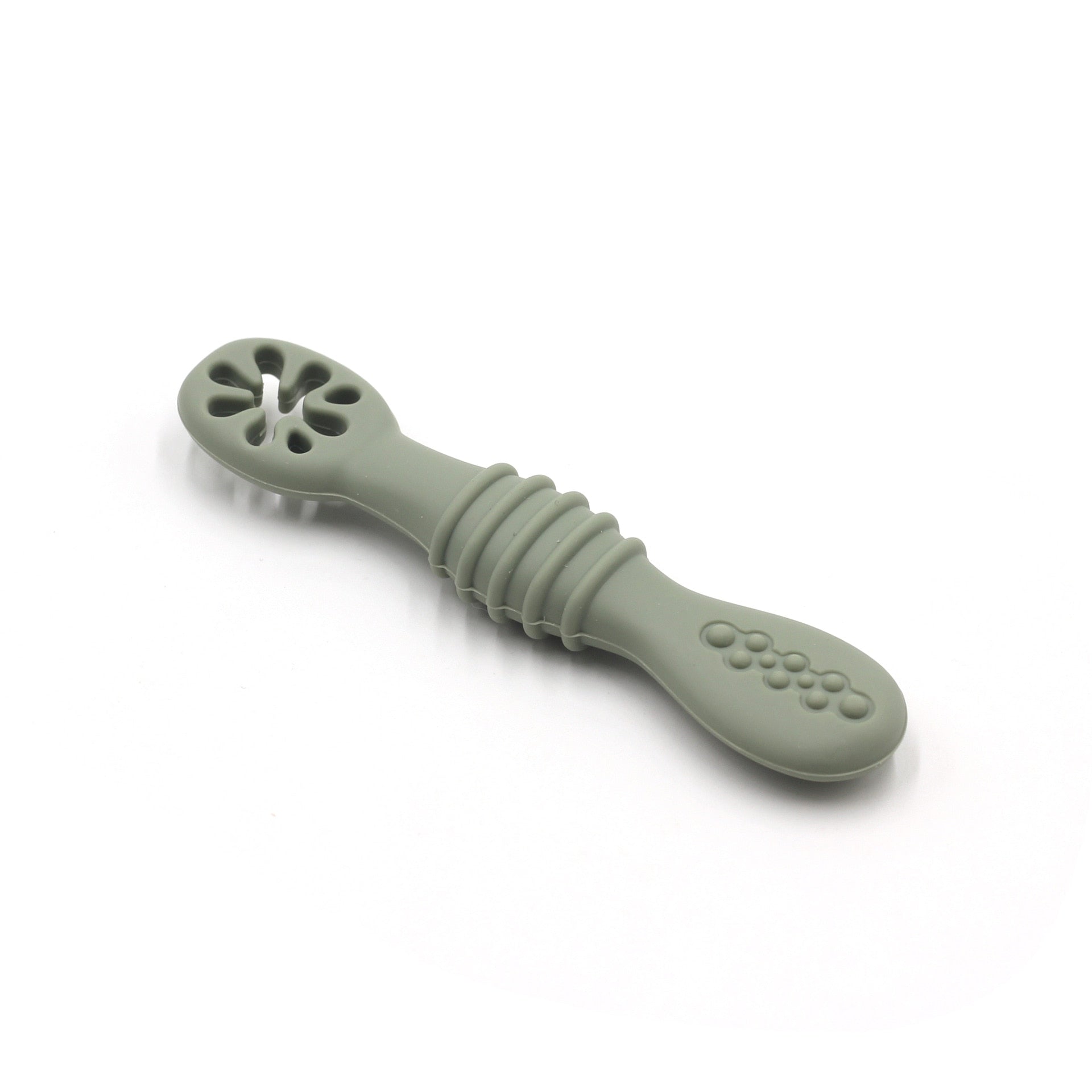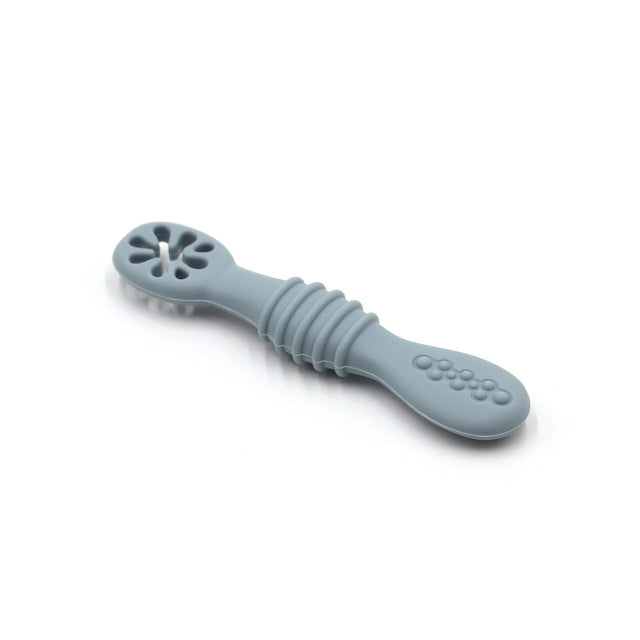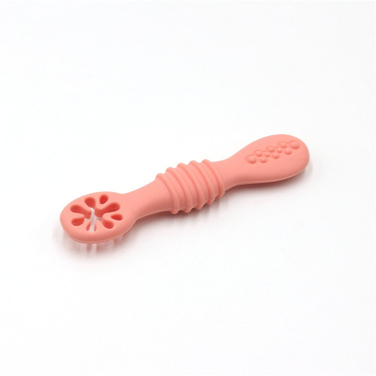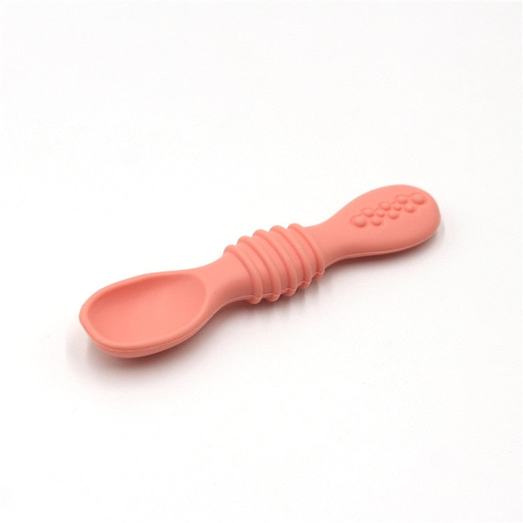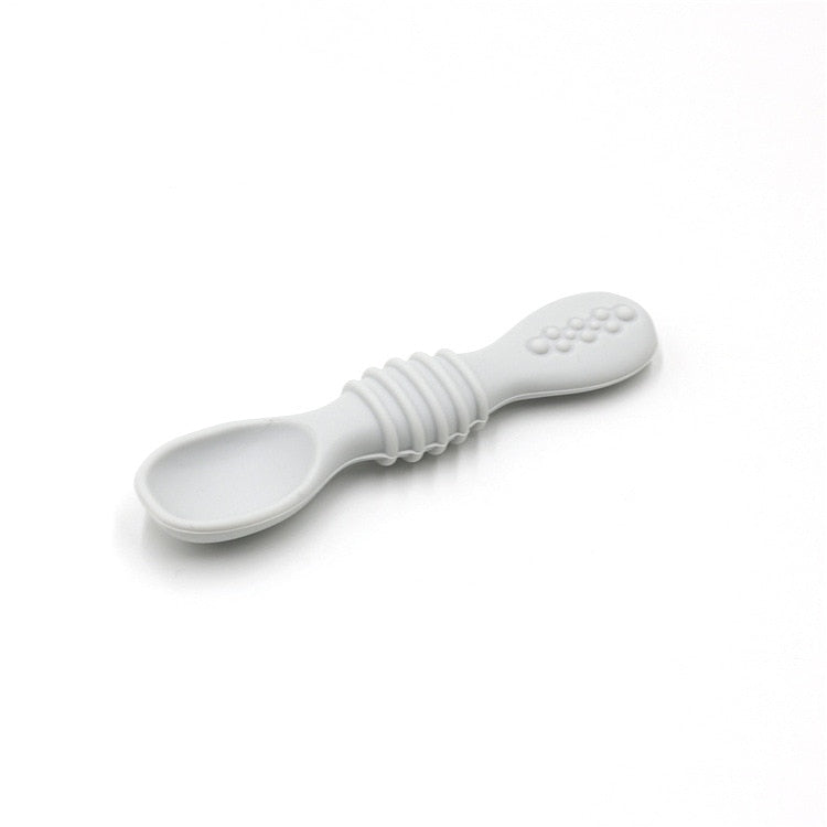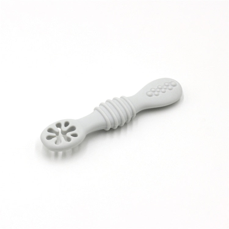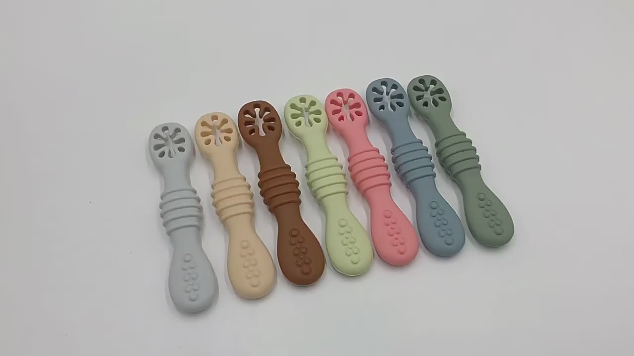 The baby spoon is designed with a shallow scoop, perfect for small mouths and little hands to learn how to self-feed. The spoon's rounded edges ensure your baby's gums and teeth won't hurt during mealtime. The ergonomic handle is easy for babies to grip and hold, which helps develop their motor skills and hand-eye coordination.